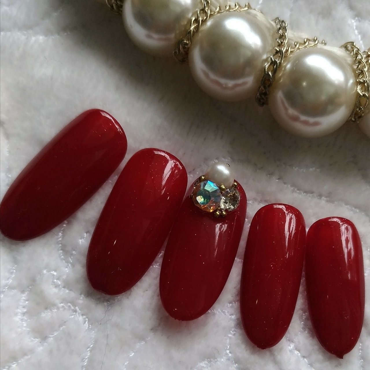 ラメ入り濃い目赤のワンカラーです Lumiena Ginza所属 ルミエナ銀座 金智賢のネイルデザイン ミニモ